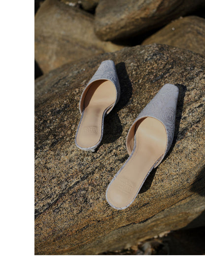 B-FEI kitten heel square head French half-drag wedding mule heel - Wedding Rose gray