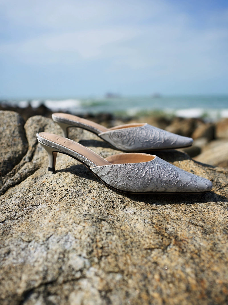 Step out in style wearing these chic "B-FEI kitten heel square head French half-drag wedding mule heel" shoes. Featuring a gorgeous dashing rose gray hue and a stunning square head, they are perfect for a modern yet sophisticated look. Elevate your wedding look with these beautiful mules and be the belle of the ball.