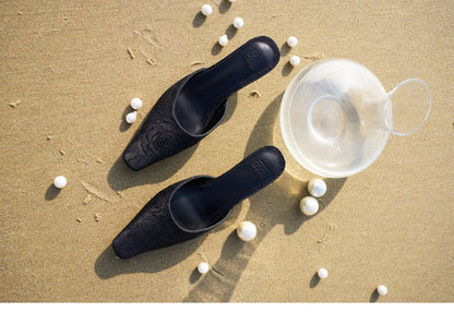 B-FEI original design French half-drag kitten and mules - Rose Story