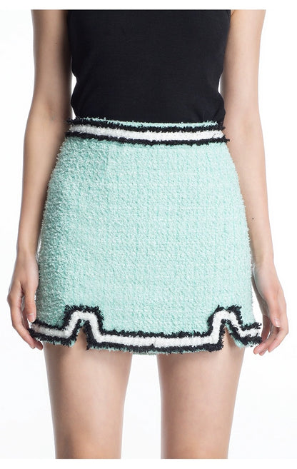 LEDI W Barbie pastel blue frayed tweed coat top jacket + skirt - Salny