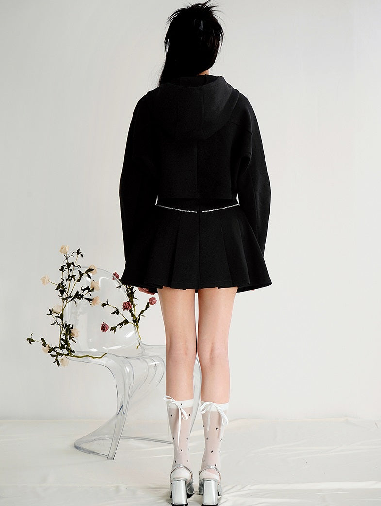 Get ready to turn heads with our CHECOCRE Stubble Butterfly Cut-out High-waisted Pleated Two-piece Suit Set in striking BLACK. The adorable pink butterfly design with crystals, adds a touch of elegance, while the black mini skirt with pleated design keeps you on-trend. Complete with a comfy HOOD, this set is the ultimate combination of style and comfort.
