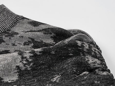 This two-piece jacquard wool sweater by COMME MOI Lu Yan features a sophisticated Romanesque pattern in elegant gray and black tones, blending vintage charm with artistic detail. The single-sided knit highlights a refined texture, while the asymmetric shoulder drape introduces soft, structured folds that enhance layering and gracefully frame the neckline. Designed for a modern yet timeless aesthetic, this ensemble offers both visual depth and a flattering silhouette.