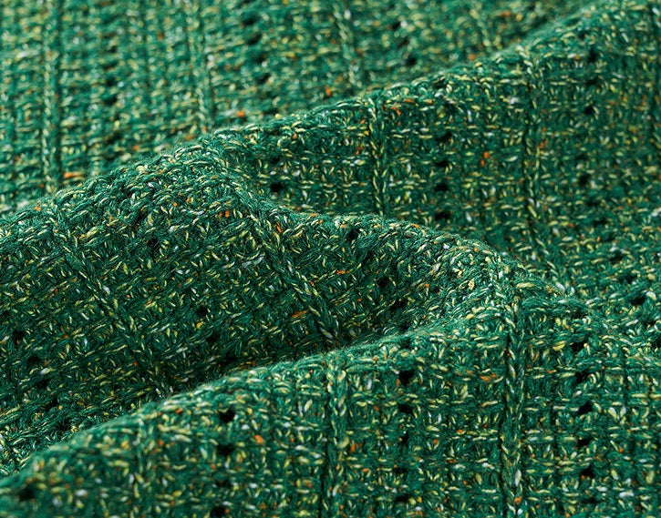 COMME MOI Lv Yan designer spring hollow small fragrance knitted cardigan jacket - IRIS.