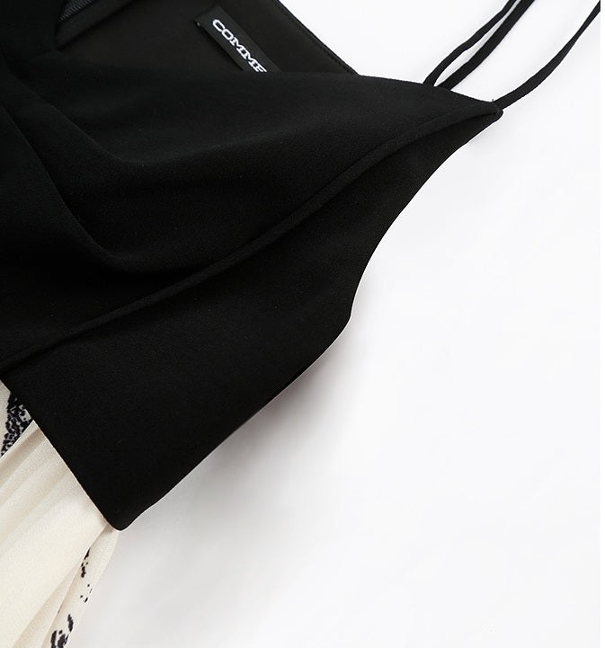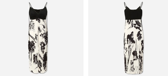 This resort-style bandeau dress showcases adjustable thin straps that drape gracefully for a secure yet elegant fit. Vertical 3D pleats enhance the garment with dynamic movement and depth, while bust darts gently lower the neckline, creating a distinctive and innovative silhouette. The combination of these design elements results in a sophisticated dress that balances structure with fluidity, ideal for stylish spring occasions.