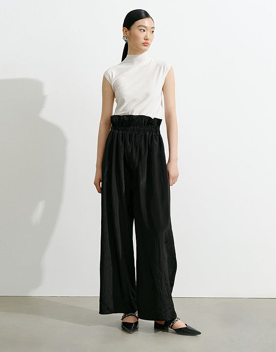 This high-neck, cap-sleeve knit top from CM’s Spring collection is expertly crafted from a viscose-nylon blend that delivers a cool touch and natural elasticity for lasting comfort. Its seamless design enhances a slim fit, while the structured neckline and cap sleeves elegantly define the shoulders and neck. Ideal for layering or standalone wear, this top offers both refined style and functional ease.