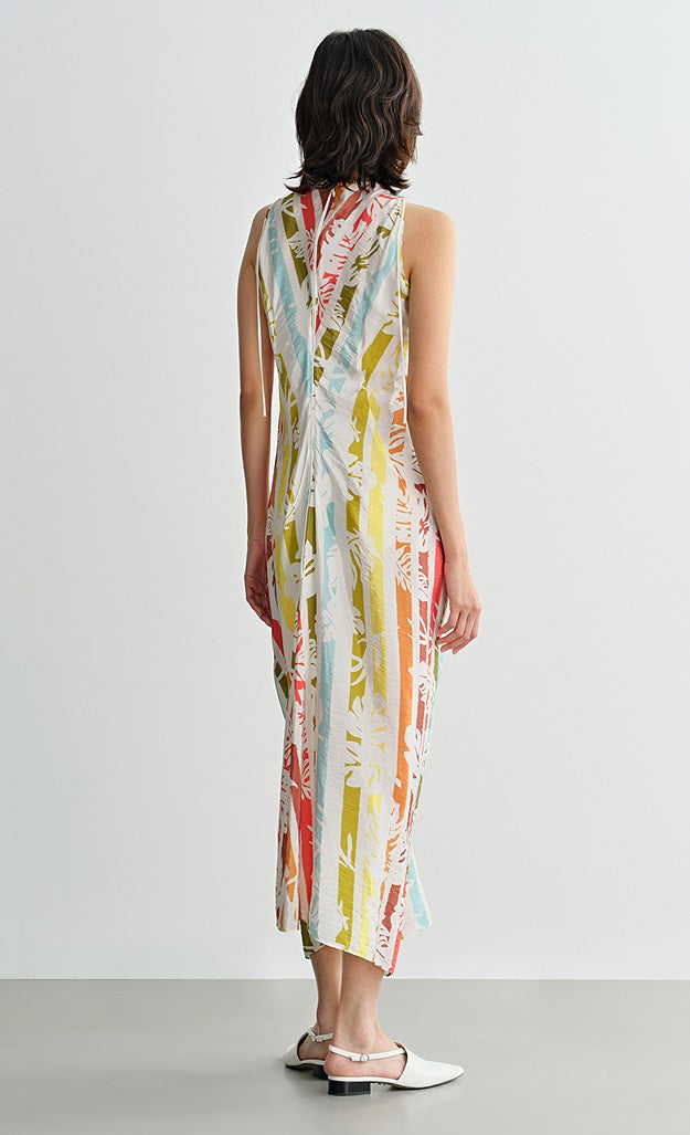 COMME MOI Lv Yan designer summer beach sleeveless print waist dress - AVA.