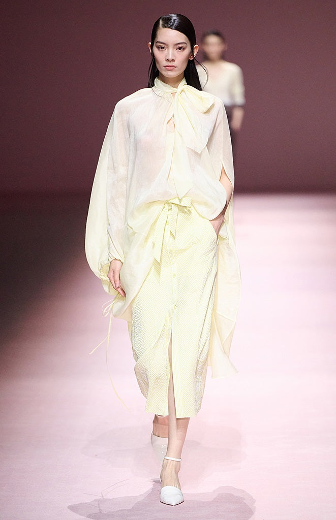 Infuse your summer collection with vibrant energy through this expertly designed striped skirt, featuring an Italian-sourced elastic jacquard fabric in a striking yellow and white palette. The dynamic stripe pattern delivers fresh visual impact while the premium jacquard construction ensures structural integrity and refined drape. The elastic composition provides comfortable flexibility without compromising the skirt's polished silhouette. A sophisticated slit detail adds contemporary movement and dimension to the design. This piece seamlessly bridges bold color statement with understated elegance, making it an essential foundation for versatile warm-weather styling.