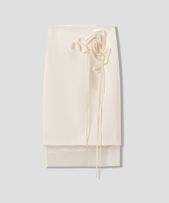 The COMME MOI Lv Yan designer summer skirt elevates everyday wear through meticulous artisanal detail. Dimensional woven florals create a sculptural surface that commands attention while maintaining refined elegance. A lightweight organza panel at the hem introduces ethereal movement and translucent grace, allowing the skirt to flow with natural fluidity. Crafted from a fine, composite fabric with a smooth finish, the piece achieves crisp silhouettes that beautifully showcase both the three-dimensional floral embellishments and the delicate organza overlay. A sophisticated choice for those who appreciate intricate craftsmanship and dynamic, graceful design.