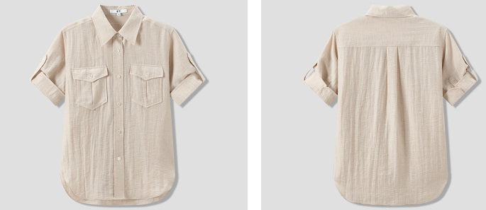 COMME MOI summer women's lapel loose short-sleeved shirt - EEMA.