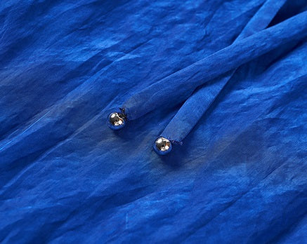 This sleeveless draped top demonstrates refined design through intentional proportioning and versatile styling capability. The V-neckline cleanly extends the visual line of the neck, effectively elongating the silhouette for a streamlined appearance. An integrated thin belt provides adjustable waist definition, allowing you to transition fluidly between relaxed, effortless styling and a more structured, polished silhouette based on occasion and preference. Constructed from a lustrous fabric with inherent drape qualities, the material features a glossy surface paired with a soft, smooth, skin-friendly texture that moves gracefully against the body. A distinctive natural crinkle effect woven throughout the weave adds dimensional interest and an understated, relaxed sophistication. The combination of these material properties creates a top that balances visual elegance with comfortable, everyday wearability.