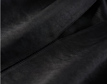 This elegant cape-style top features a refined V-notch collar that subtly enhances the shoulder and neckline for a polished demeanor. Its distinctive central “staircase” trim adds delicate visual interest and lightness to the design. Crafted from 100% acetate, the fabric feels soft and silky with a graceful drape, while the sleeveless cut ensures comfort and modern sophistication. The pure black hue delivers timeless understated luxury, making this piece a versatile addition to any summer wardrobe.