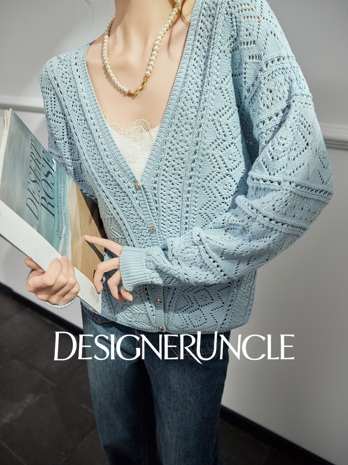 DGU "Cloud Weaving" blue knitted sew carved air quality versatile simple jacket - BEAR.