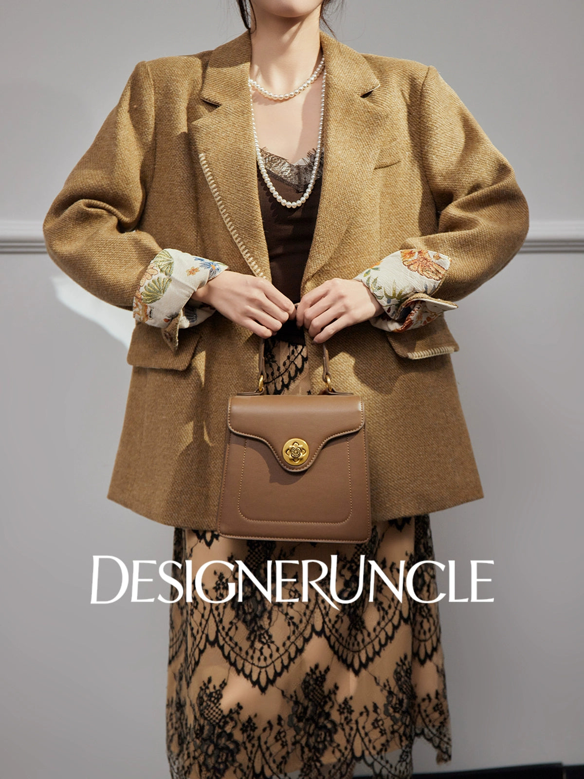 DGU| Coffee Suit Single-Breasted V-Neck Knitted Cardigan Woven Hip Skirt Set - MAKER.
