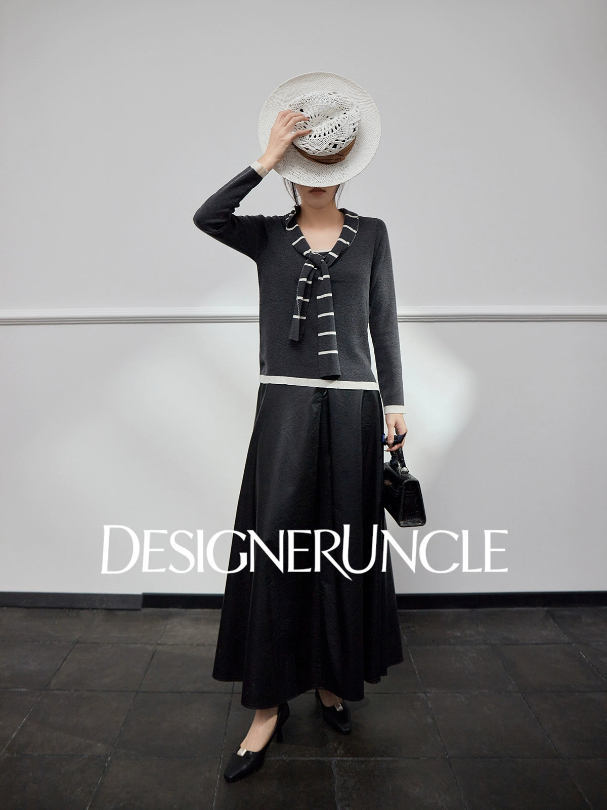Elevate your everyday wardrobe with this sophisticated dark gray striped sweat top, expertly designed with a refined bow tie detail that captures retro charm. The gentle, niche aesthetic makes it an ideal choice for the modern commuter seeking polished versatility. Pair it effortlessly with a long skirt for a cohesive, put-together look that transitions seamlessly from office to evening. The quality construction ensures lasting comfort and durability, while the timeless striped pattern and bow tie accent deliver understated elegance that transcends seasonal trends.
