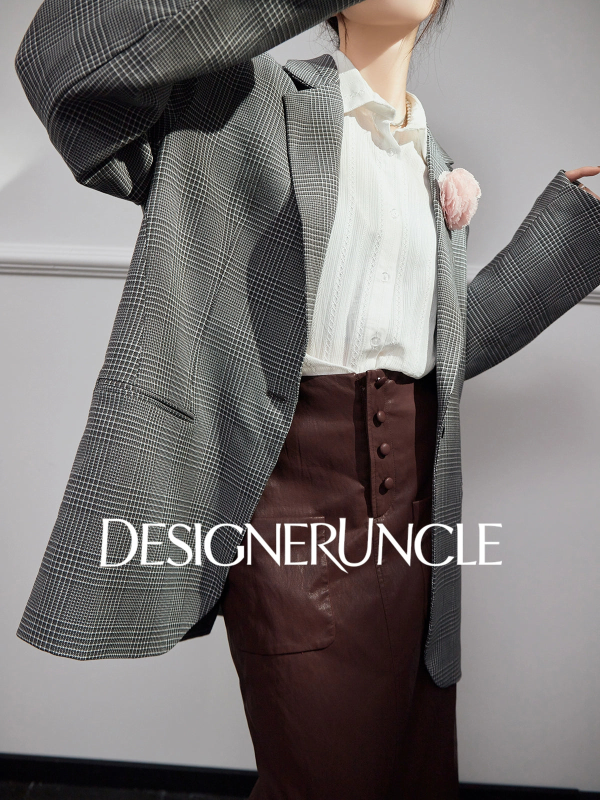 This gray plaid jacket seamlessly bridges casual and professional aesthetics with its distinctive houndstooth pattern and relaxed silhouette. The loose-fitting design prioritizes comfort without compromising sophistication, allowing for layering versatility across seasons. Premium tailoring ensures the structured jacket maintains its shape while the breathable fabric facilitates all-day wearability.