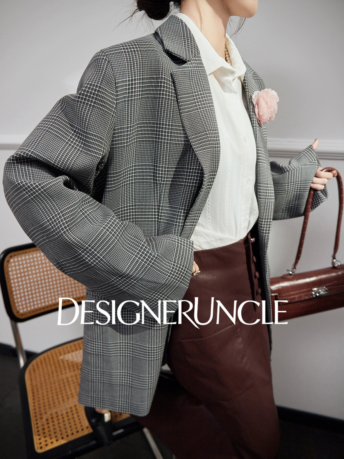 DGU|Gray plaid jacket style high-end houndstooth loose commuter top - NICK .