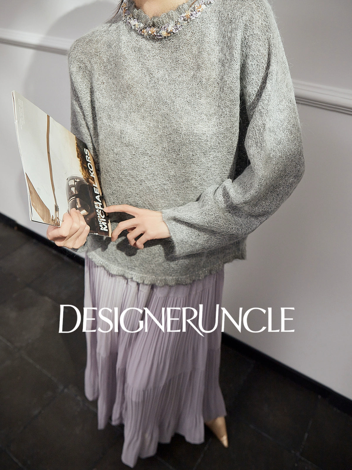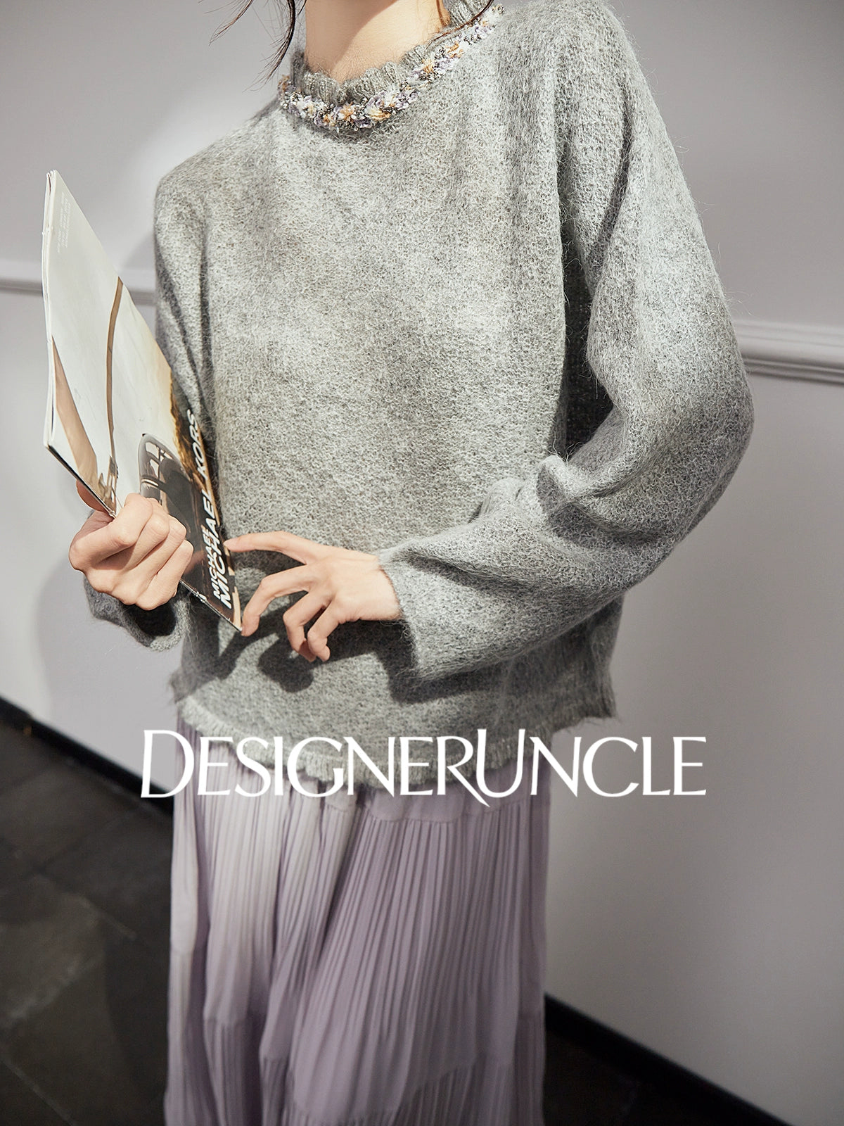 DGU|Gray new crew neck loose fashion design sense lazy style knitted top - GRACE.
