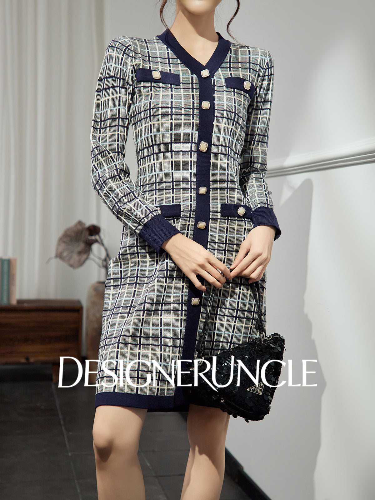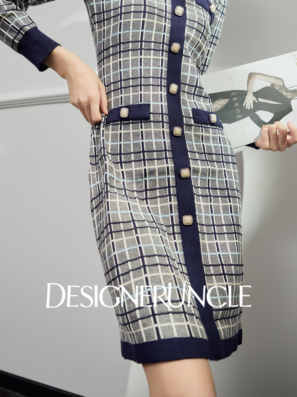 DGU "Lanzhi" royal blue new plaid slimming and versatile long-sleeved skirt - Noah.