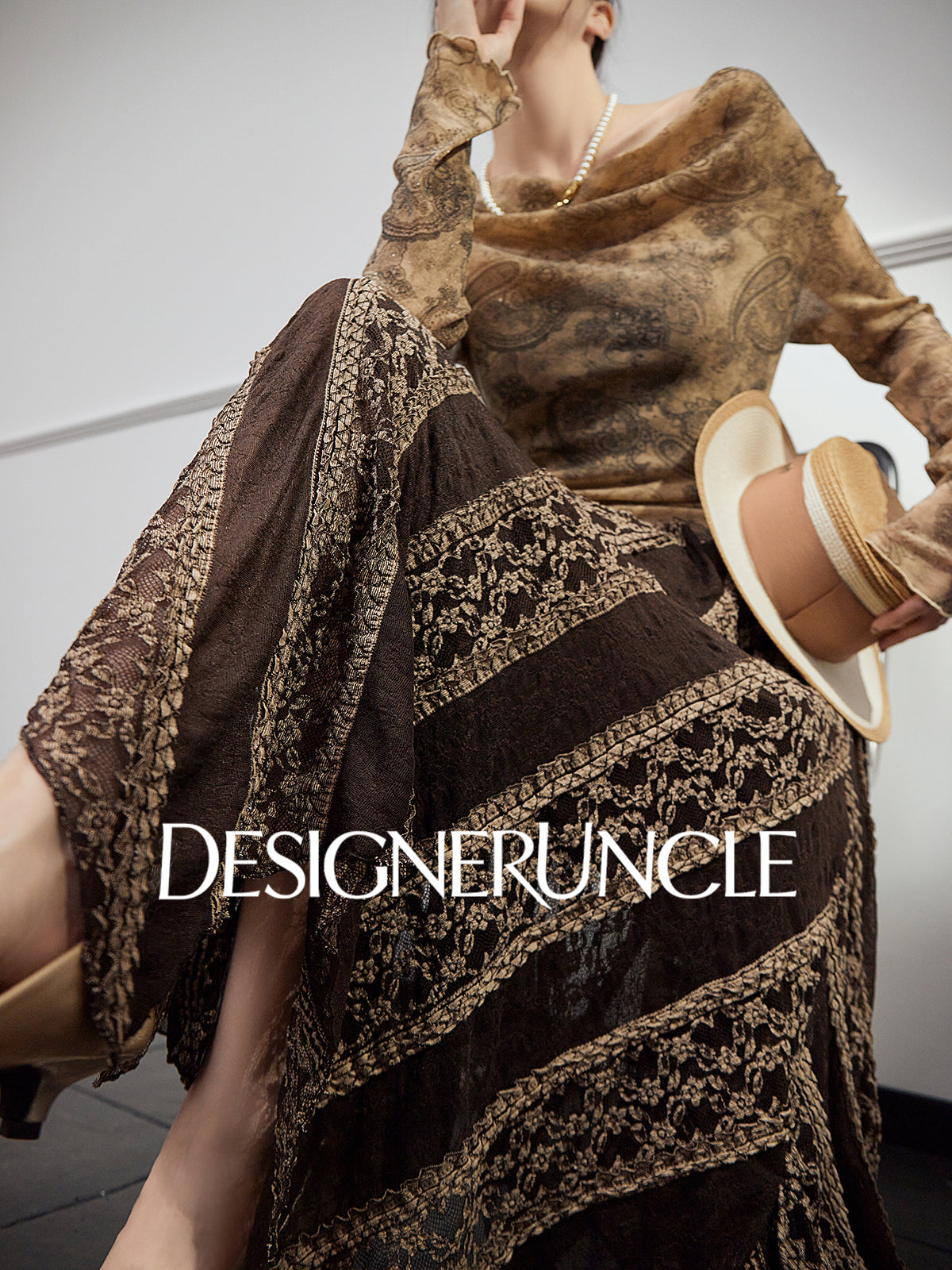 DGU "Night Weave" coffee skirt new A-line high-waisted long slimming top - PAYPHONE.