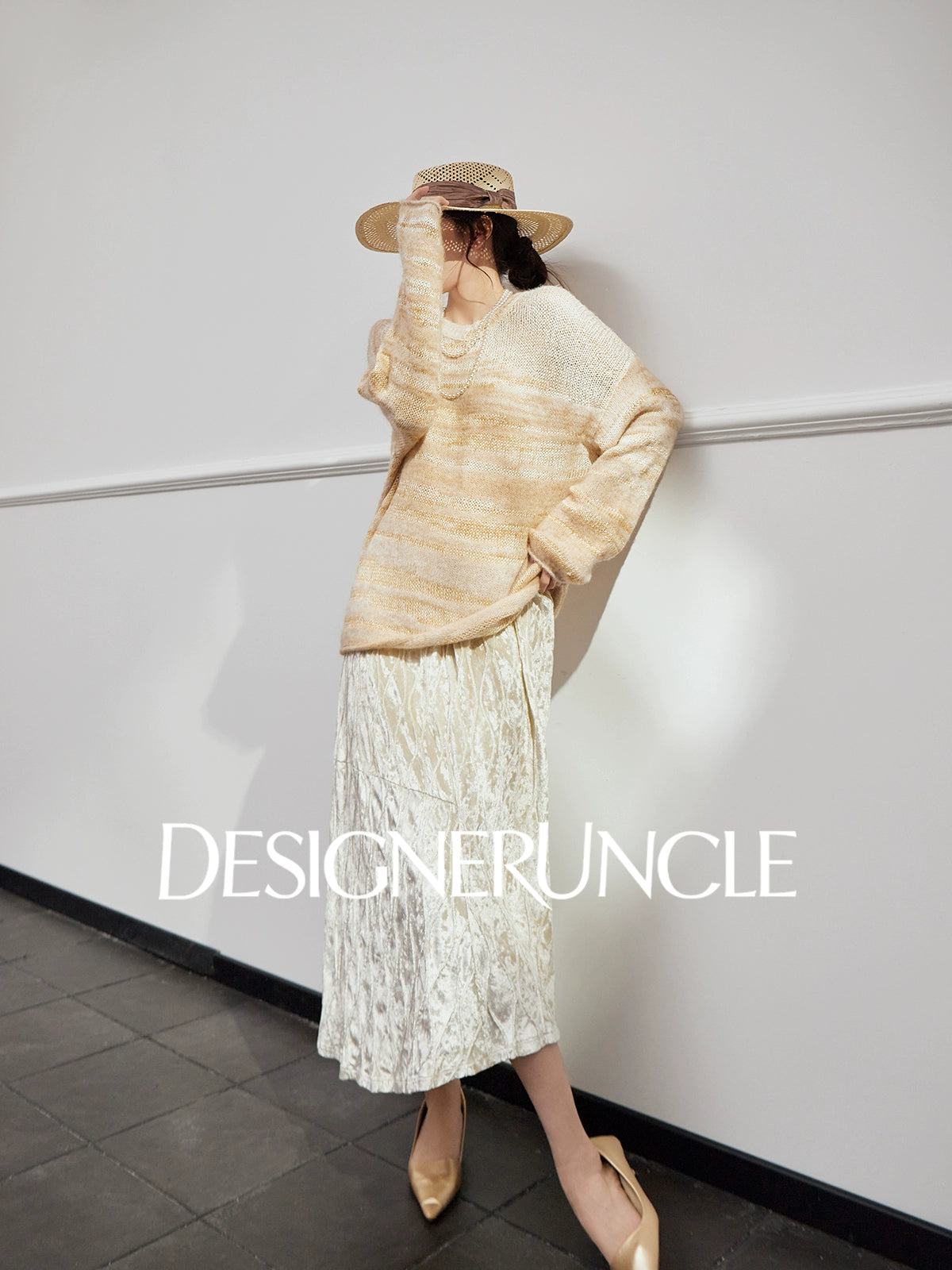 DGU|Orange and yellow sweater women's new soft waxy crew neck loose lazy design knitted top - BASE.