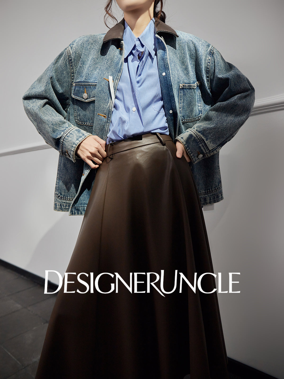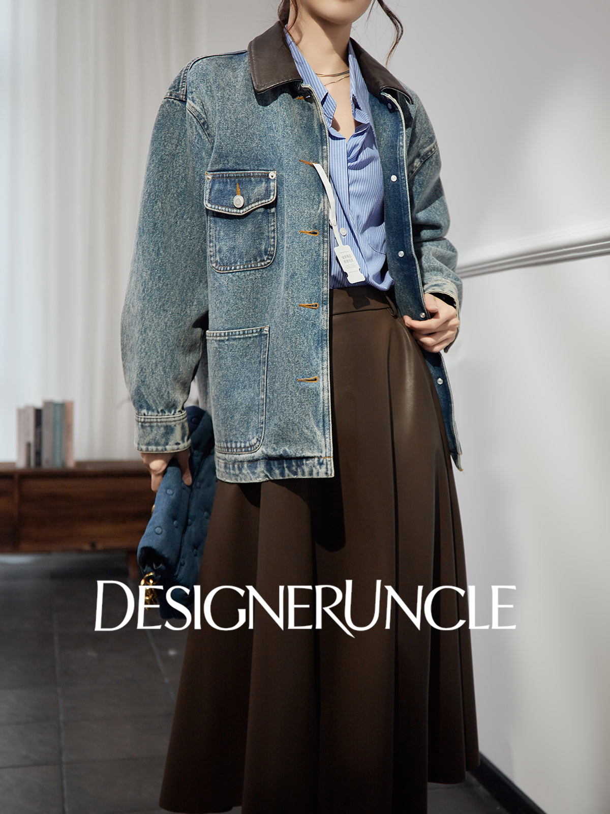 DGU "Qingyan" denim blue short jacket retro loose and versatile slimming top - Robert.