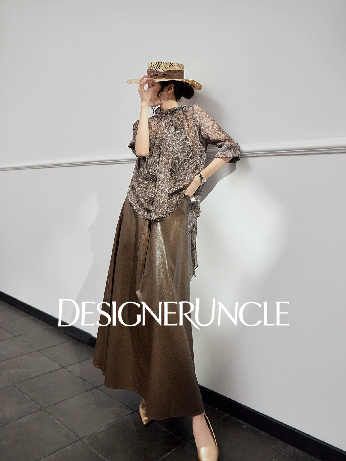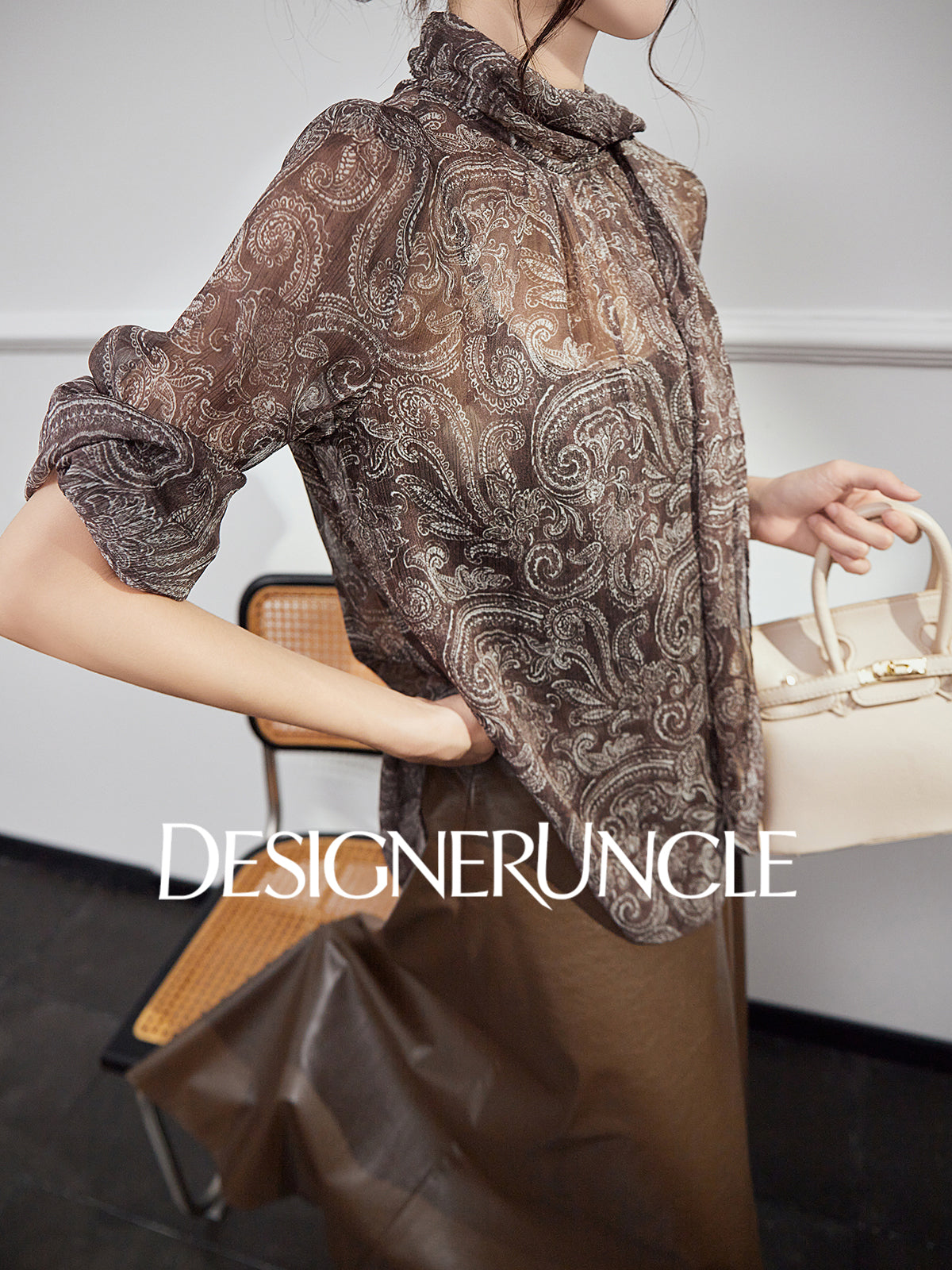DGU "Suhui" retro printed long-sleeved loose high-end commuter top - PIRATE.