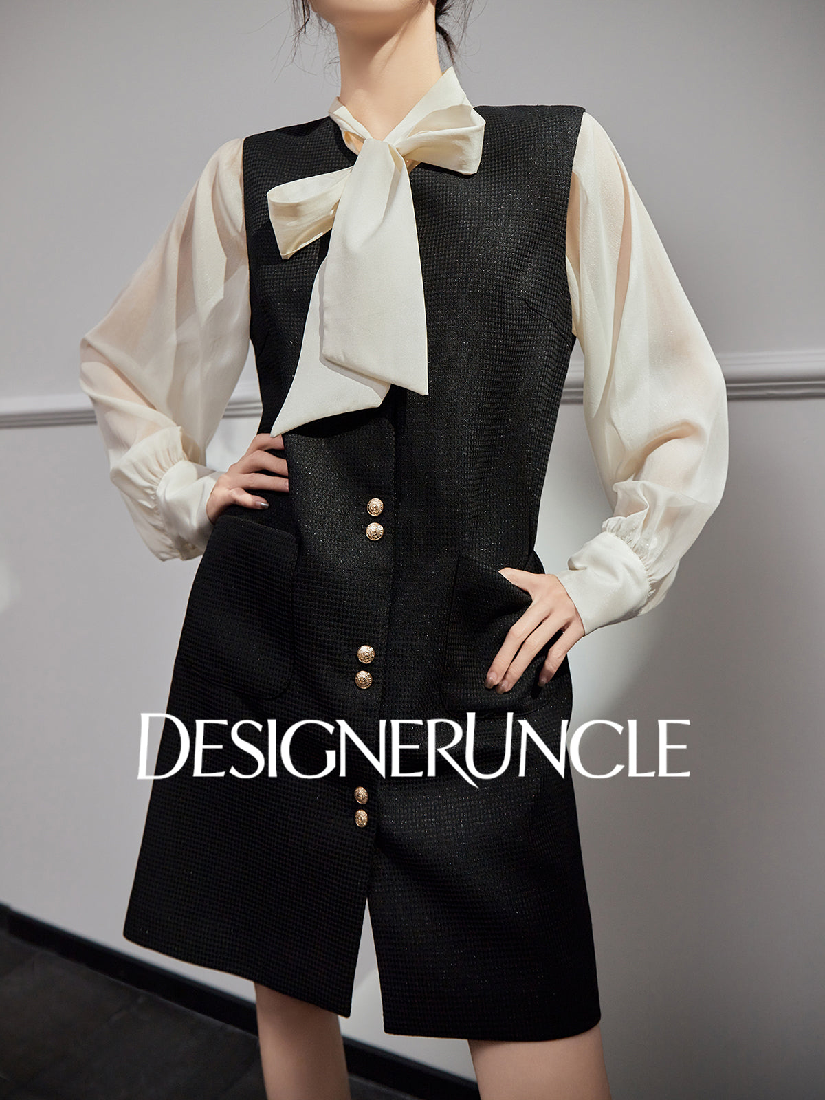 DGU "Suyu" black new small fragrance celebrity high-end commuter skirt - Carl.
