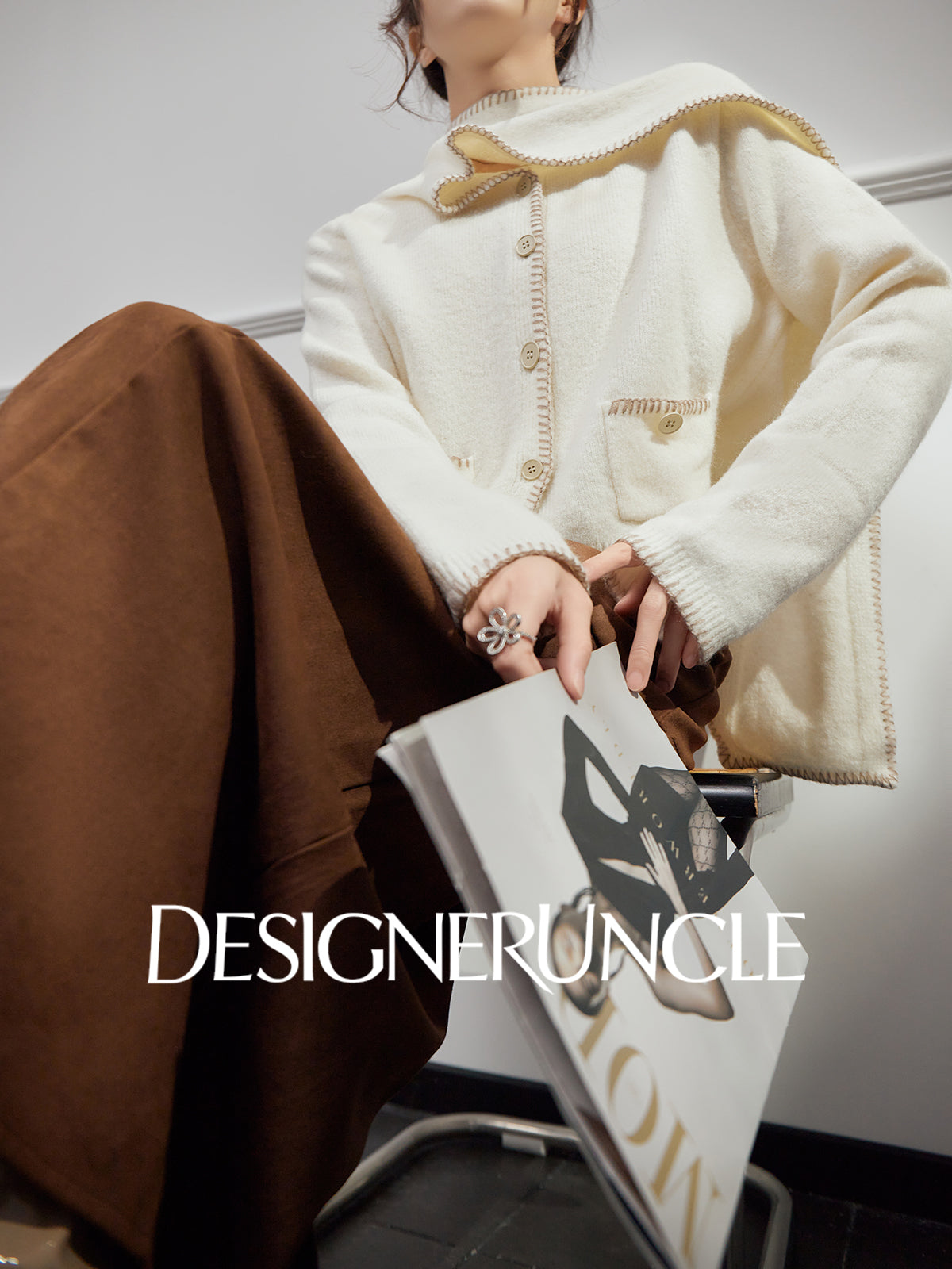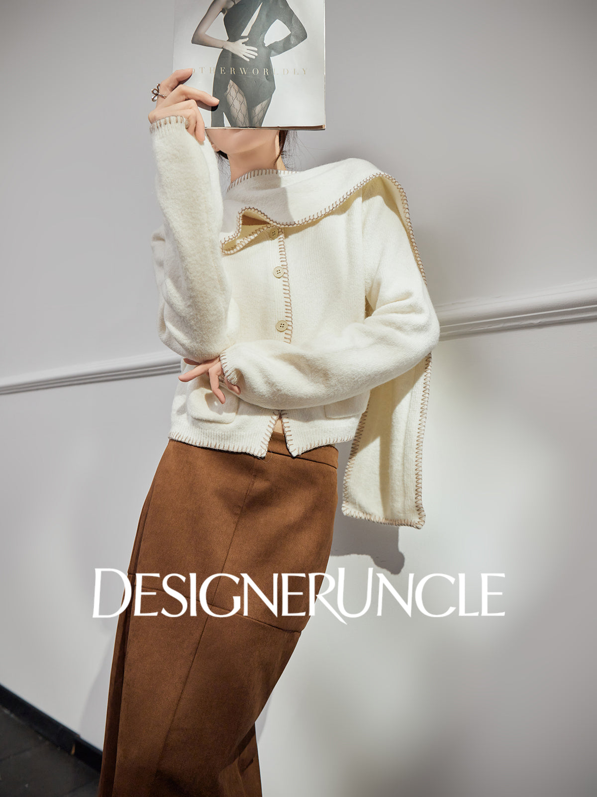 DGU "Suyu" white sweater lazy style loose and versatile slimming solid color jacket - Roberta.
