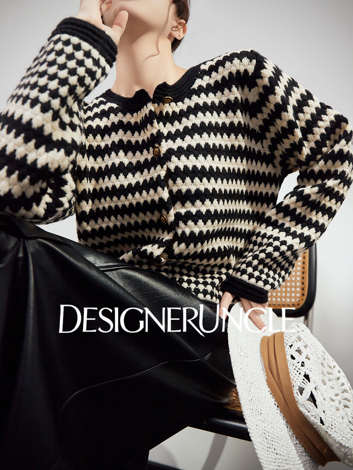 DGU "Twilight" black sweater women's new contrasting striped loose slimming knitted cardigan - MAINE.