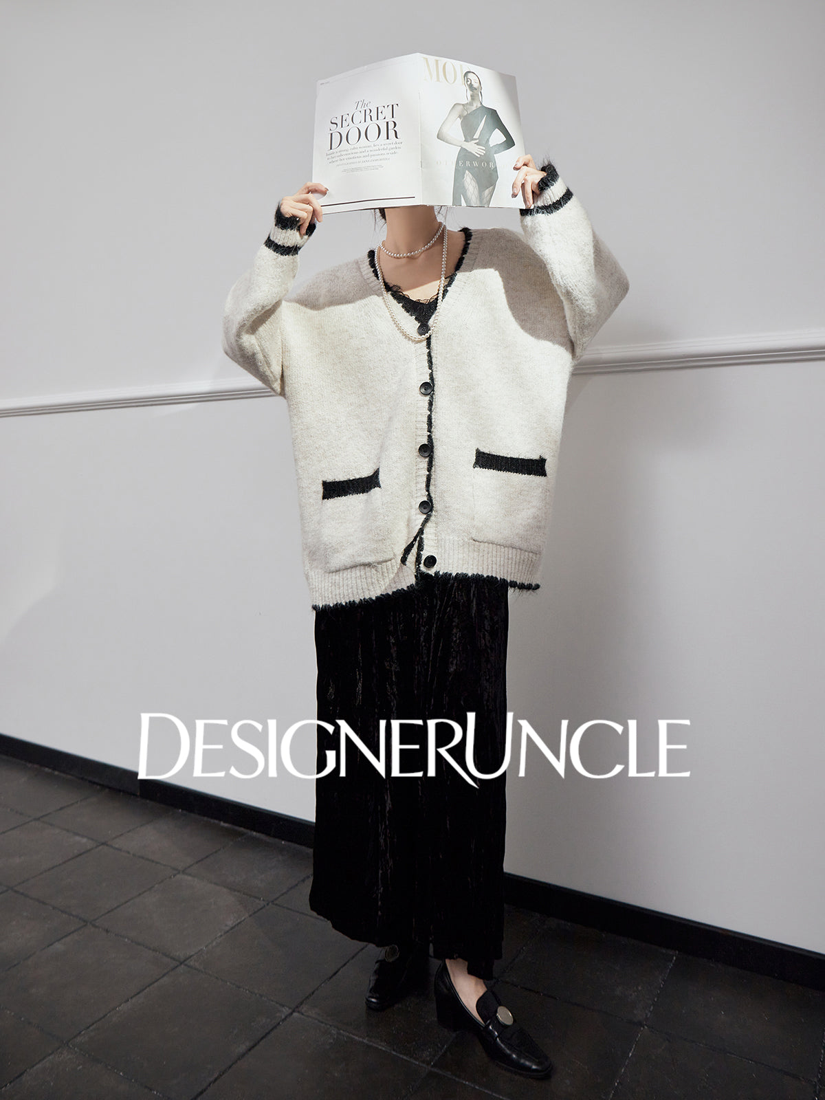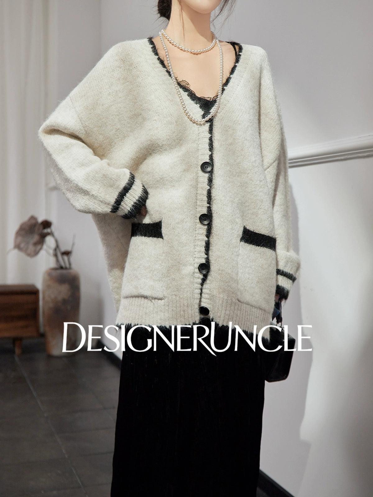 DGU "Twilight Snow" apricot new loose and lazy design knitted cardigan - NICK.