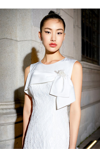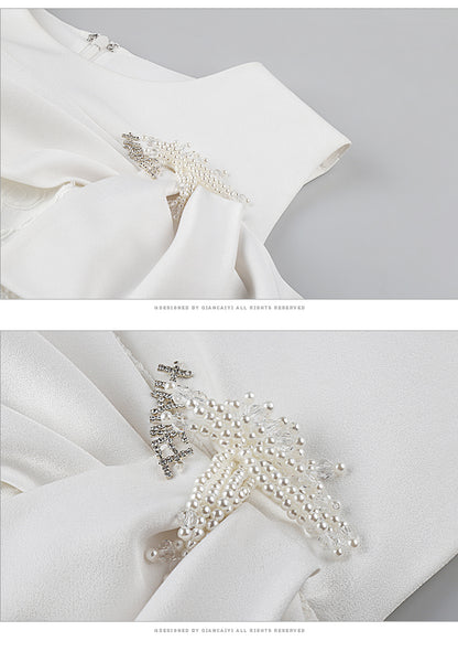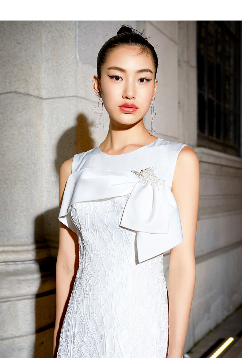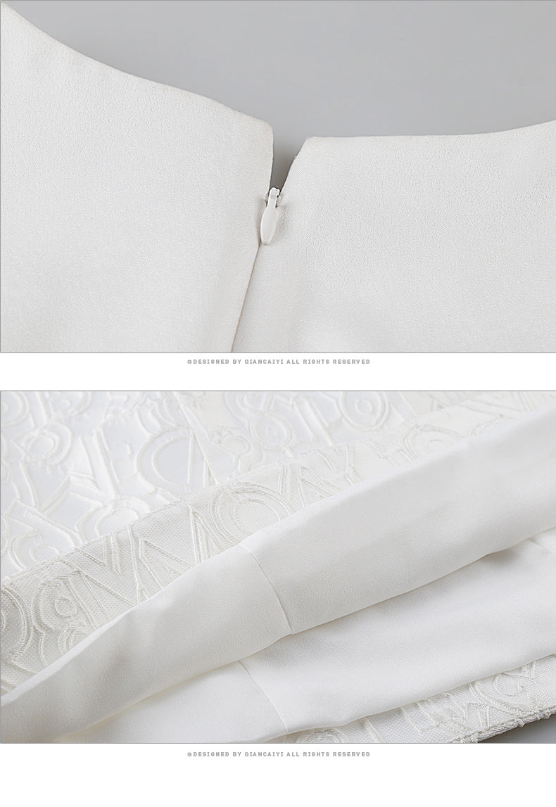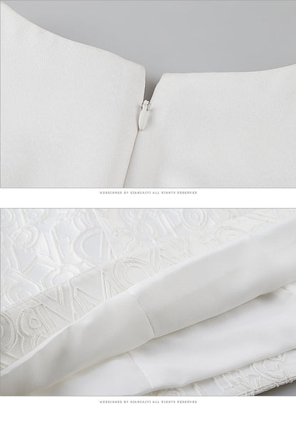 Luxury short white jacquard cocktail dress - Dira