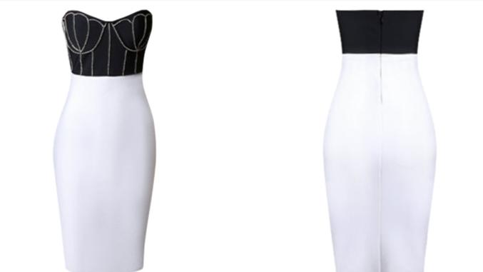 DOLLY Elegant Black and White Sleeveless Chest Wrap Bandage Midi Dress-BABE