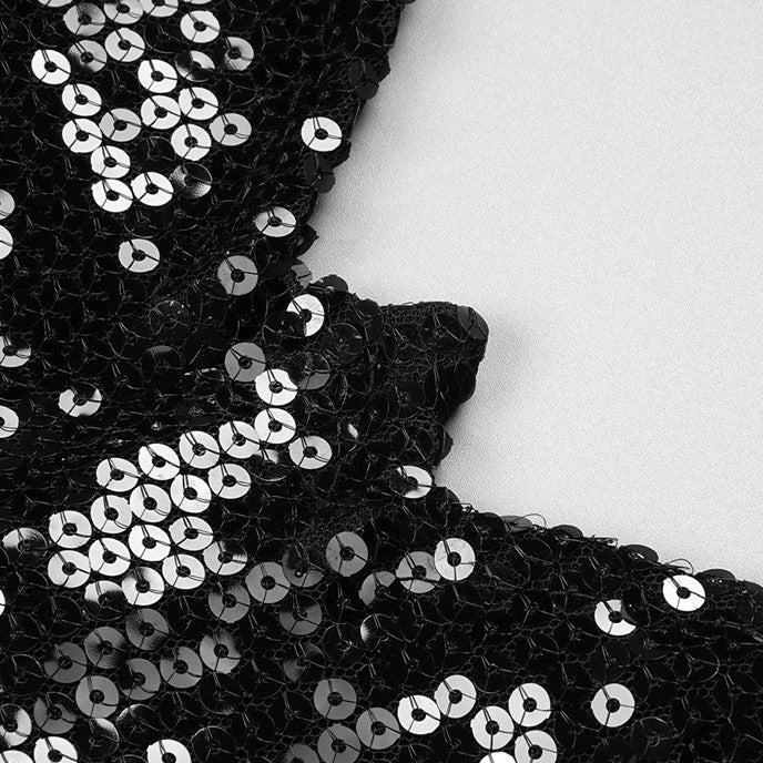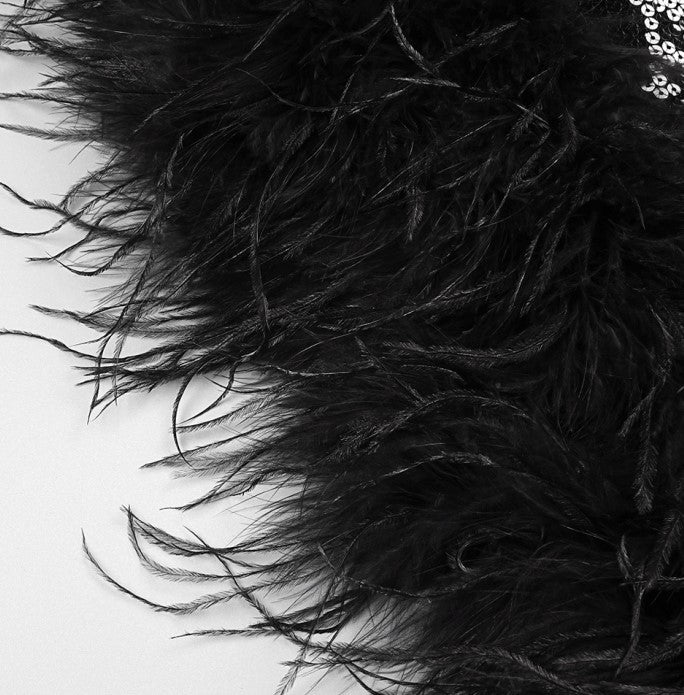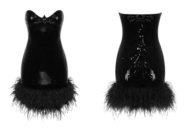 DOLLY Elegant Black One Shoulder Sequin Tube Top Short Feather Party Dress-MAVIS