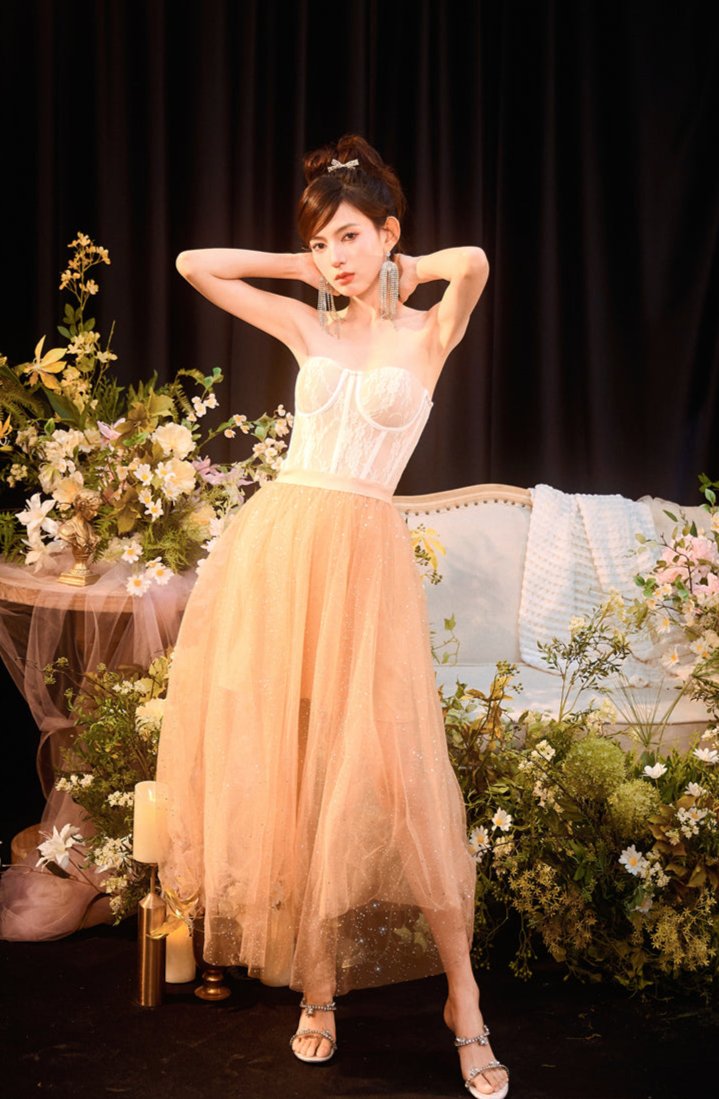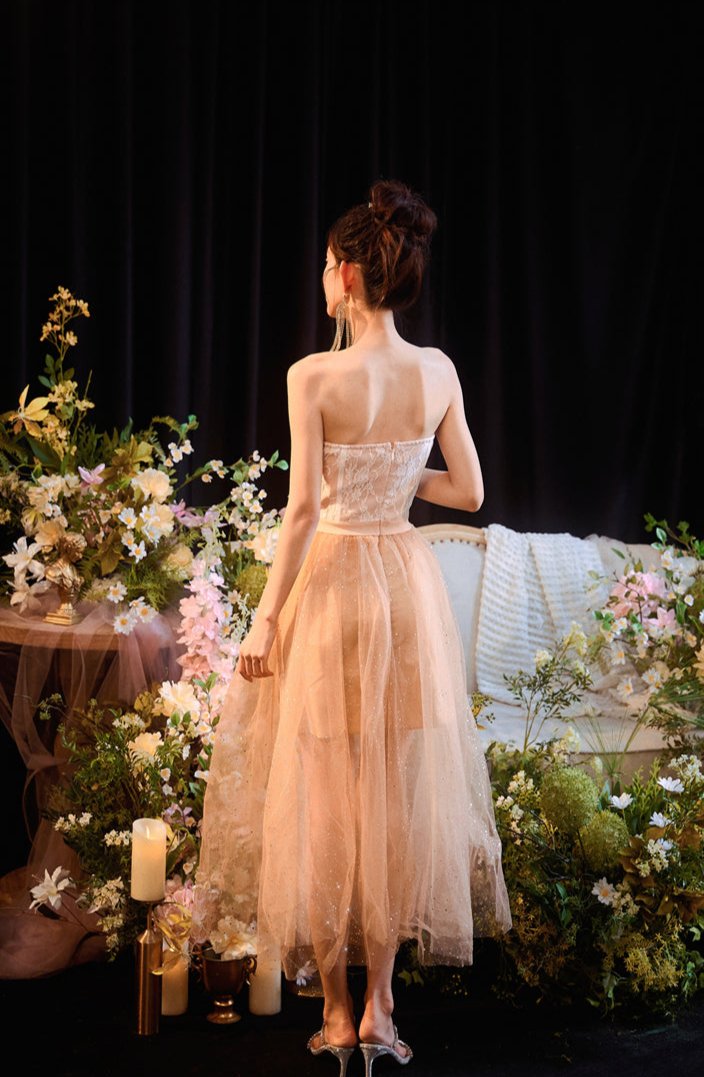 This stunning dress features intricate sequin detailing and a flattering tube top design. Perfect for special occasions and making a statement. Feel beautiful and confident in DOLLY.