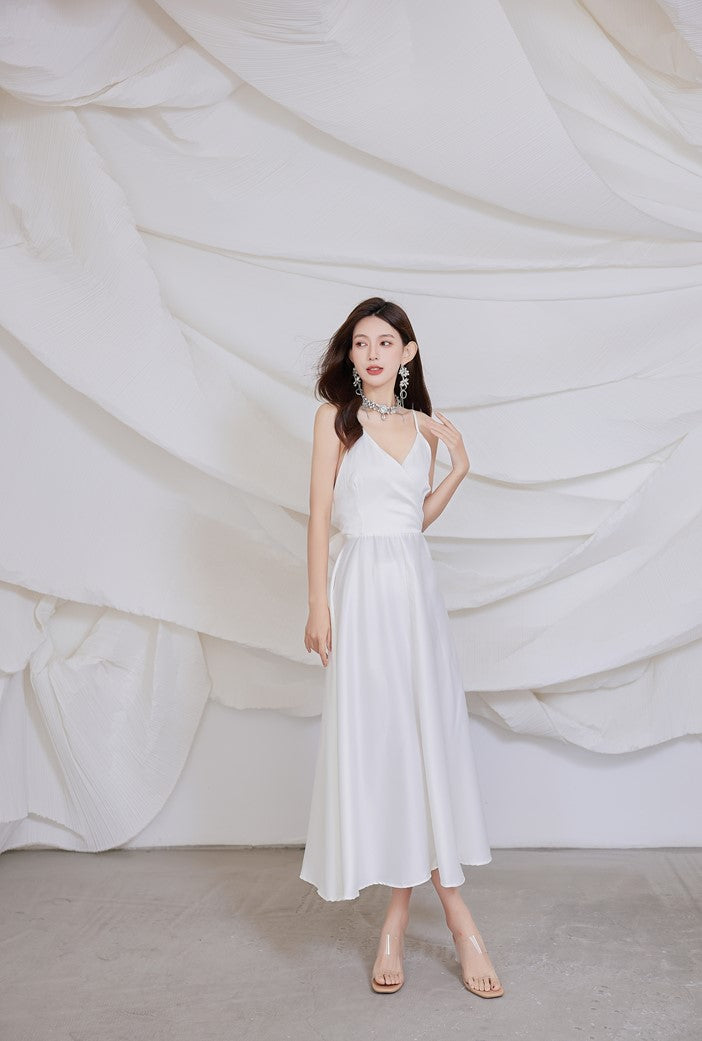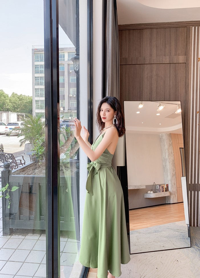 DOLLY Elegant French Style Satin V-Neck Sleeveless Backless Banquet Dress-XENA
