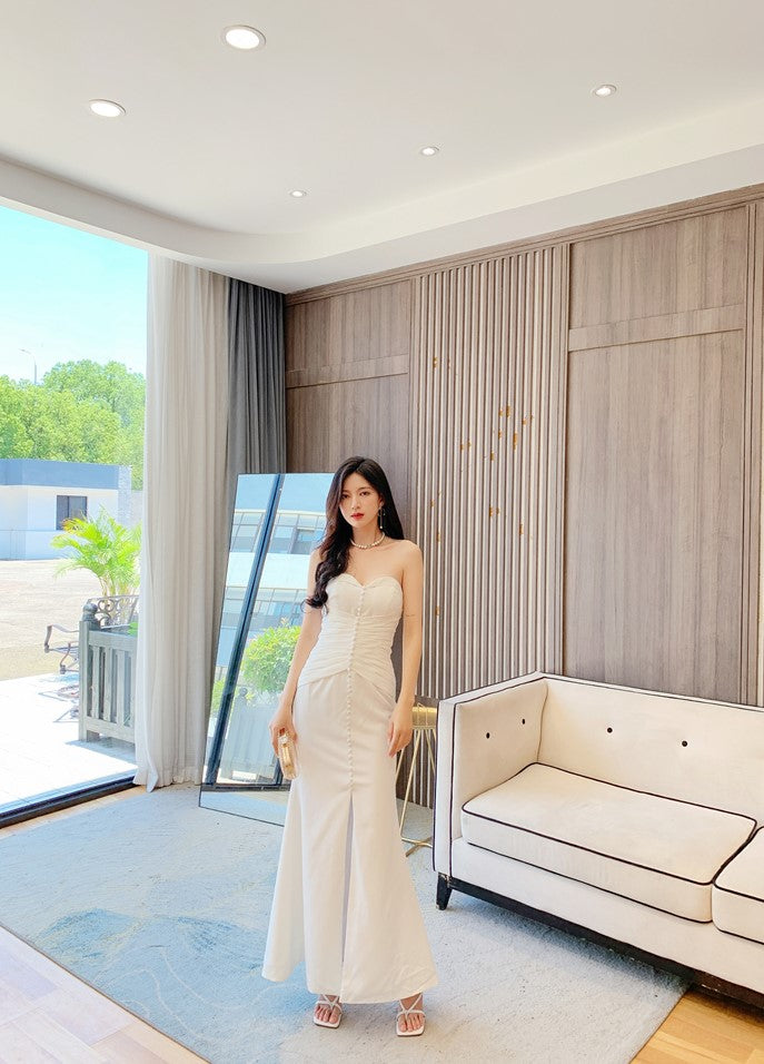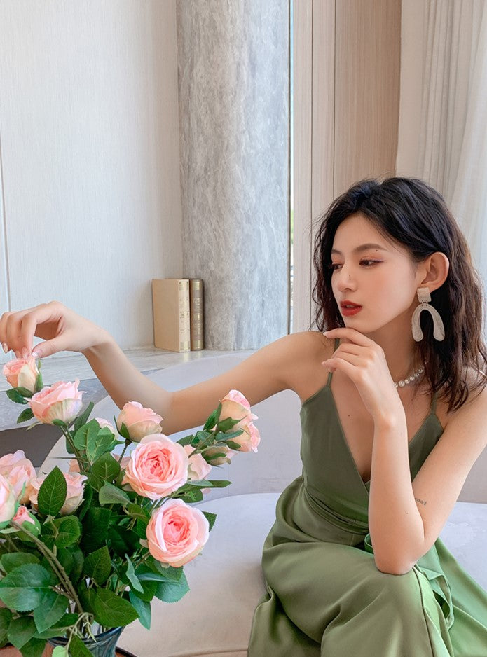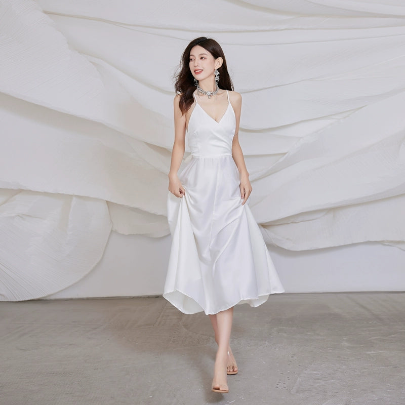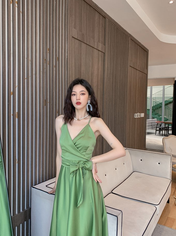 Indulge in luxurious glamour with the DOLLY Elegant French Style Satin V-Neck Sleeveless Backless Banquet Dress-XENA. The delicate satin fabric and flattering V-neckline exude elegance while the sleeveless and backless design adds a touch of sensuality. Perfect for any special occasion, this dress will make you feel like a true fashion icon.(v)
