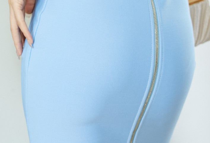 DOLLY Elegant Light Blue Slant Collar Sleeveless Body Hug Midi Formal Dinner Dress-TABITHA