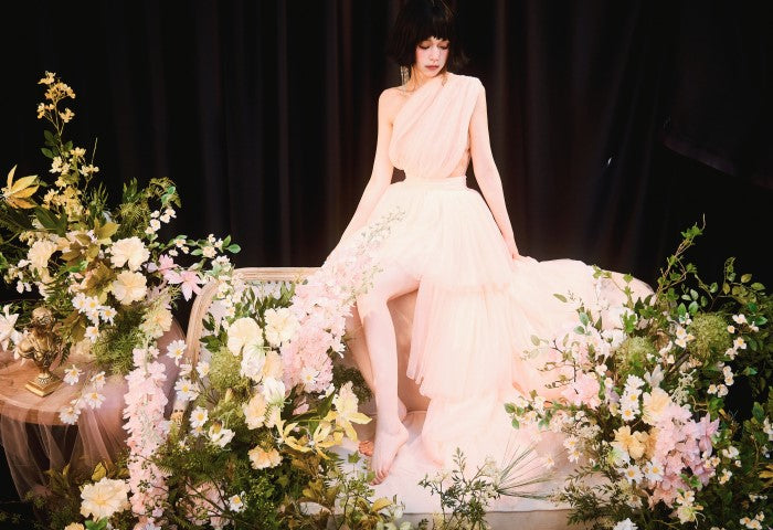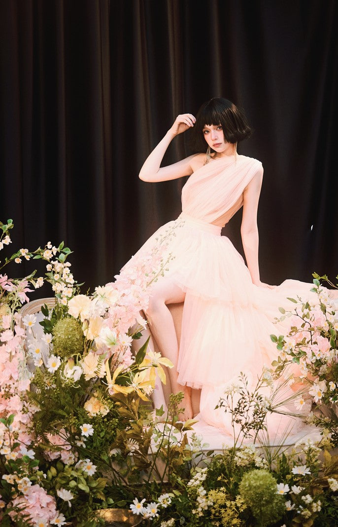 DOLLY Elegant Peach Mesh Off Shoulder Sleeveless High Waist Tutu Dress-MEDUSA (V)