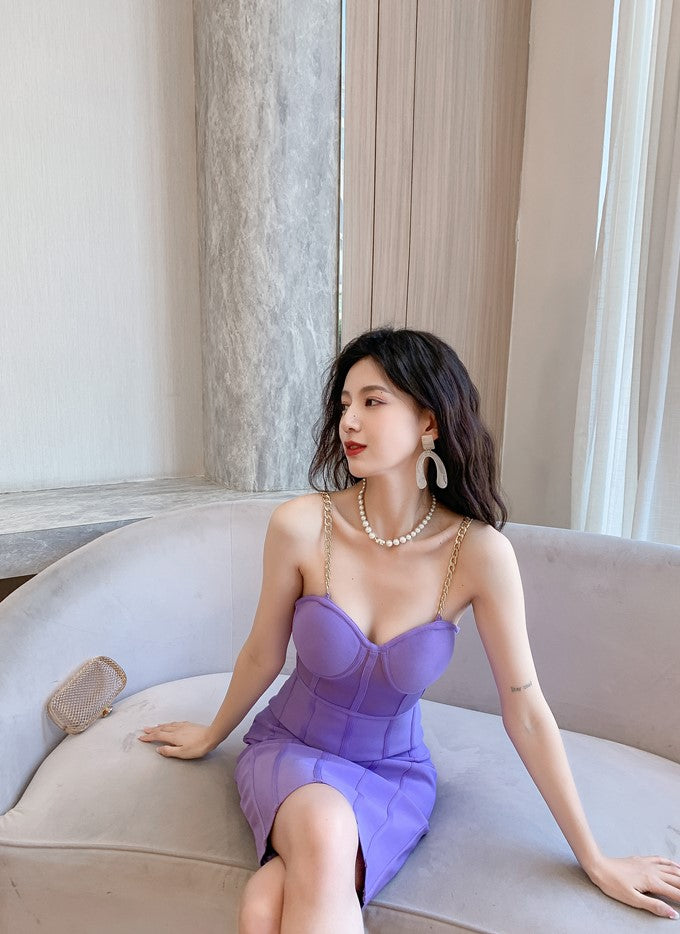 Indulge in the sensuous allure of our DOLLY Elegant Purple Dress. With its sleek sleeveless design and alluring corset back, this dress exudes an air of seduction. The hip wrap and mesh detailing add intrigue, making it the perfect choice for any party. Embrace your inner elegance with our BABA dress.(v)