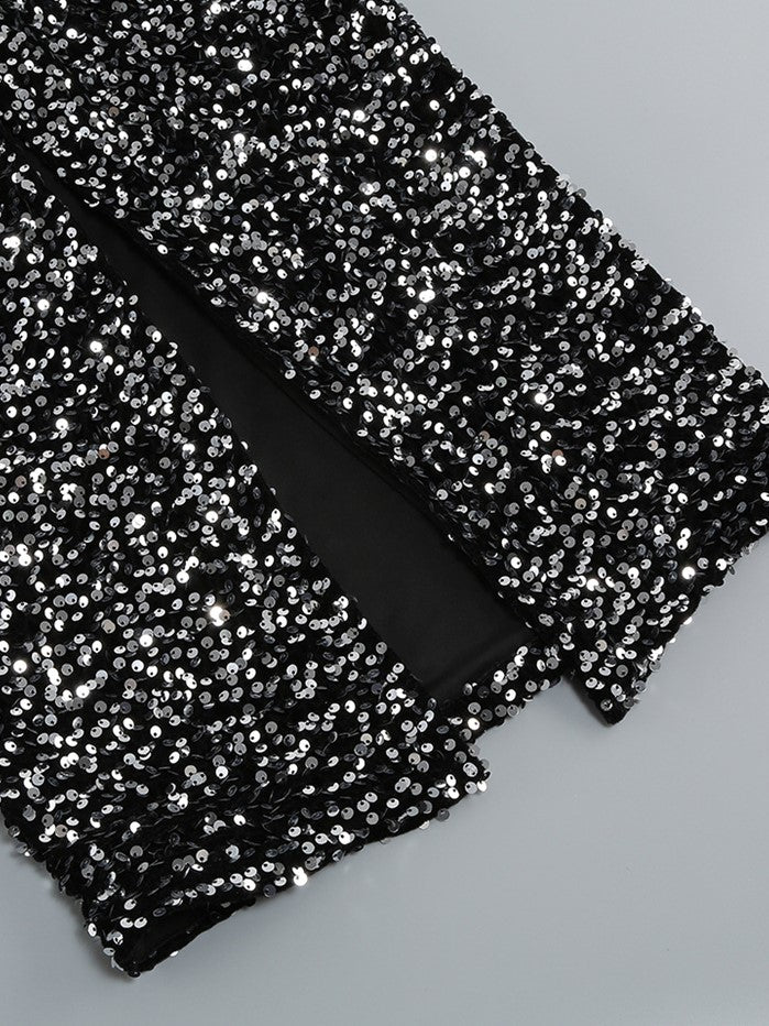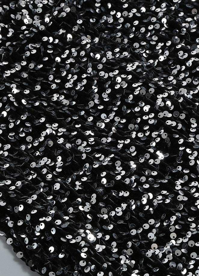 DOLLY Elegant Retro Style Crew Neck Long Sleeve Sequin Long Banquet Dress-TANIA