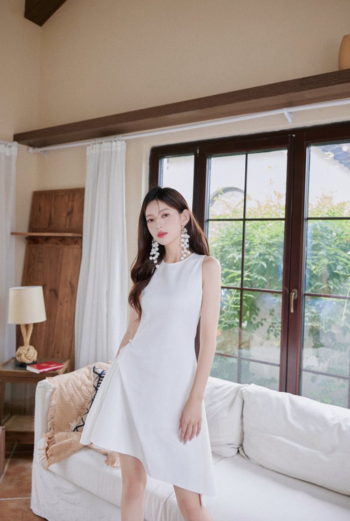 DOLLY Elegant Retro Style Crew Neck Sleeveless Slim Fit High Waist Dinner Dress-KIRSTEN