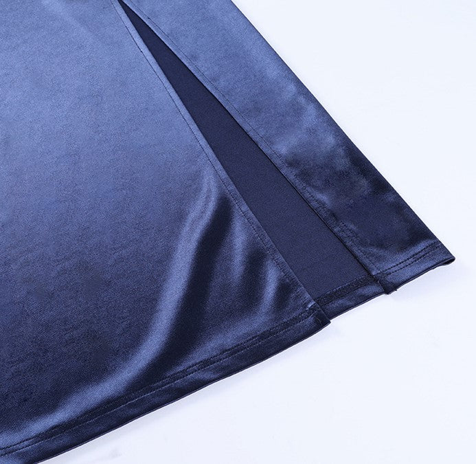DOLLY Elegant Royal Blue One Shoulder Chest Wrap Slim Fit Slit Dinner Dress-ALLEGRA