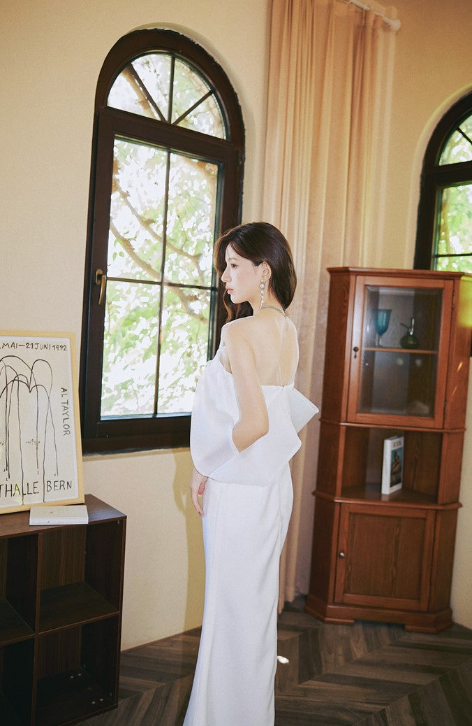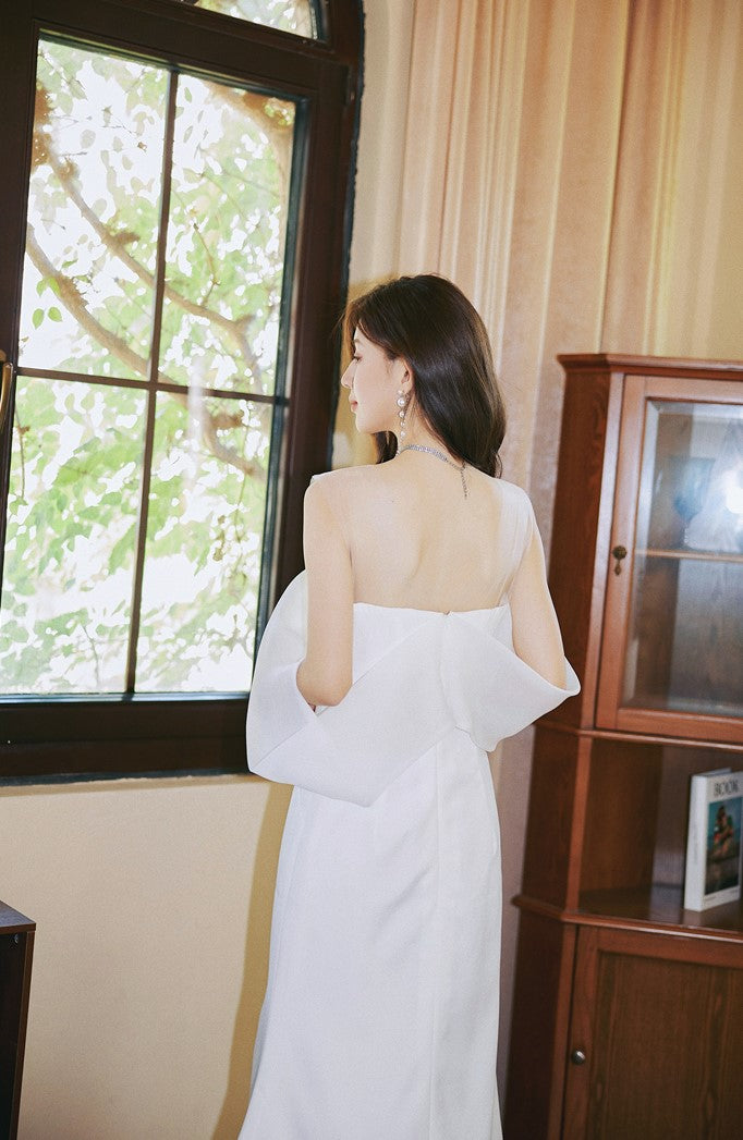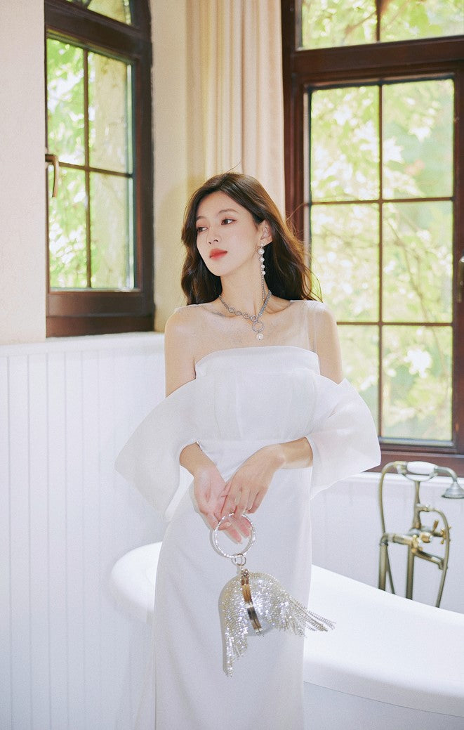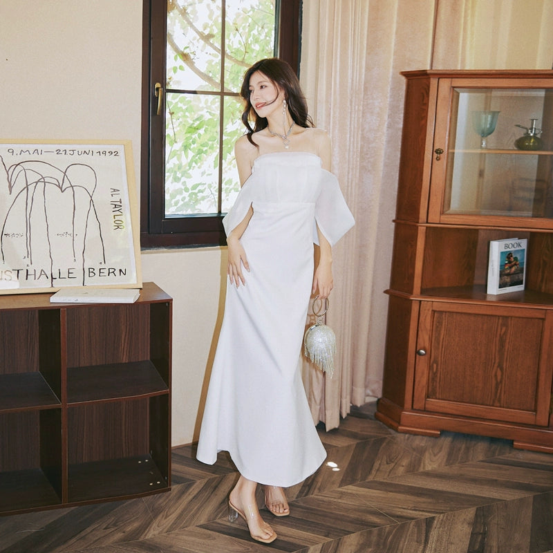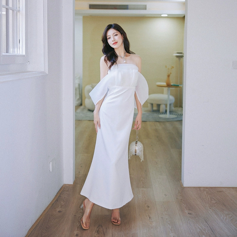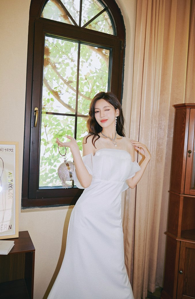 DOLLY Elegant Ruffled Off Shoulder Chest Wrap Long Fish Tail Banquet Dress-KALYA