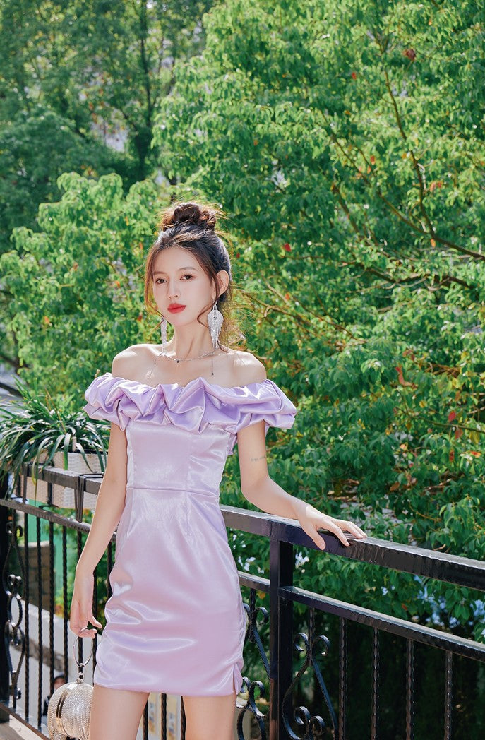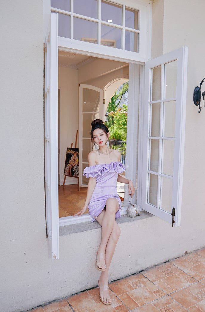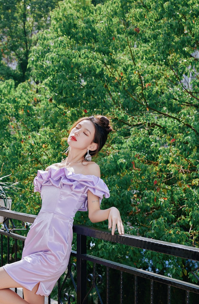 DOLLY Elegant Satin Ruffled Off Shoulder Tube Top Sim Fit Date Dress-AINSELY