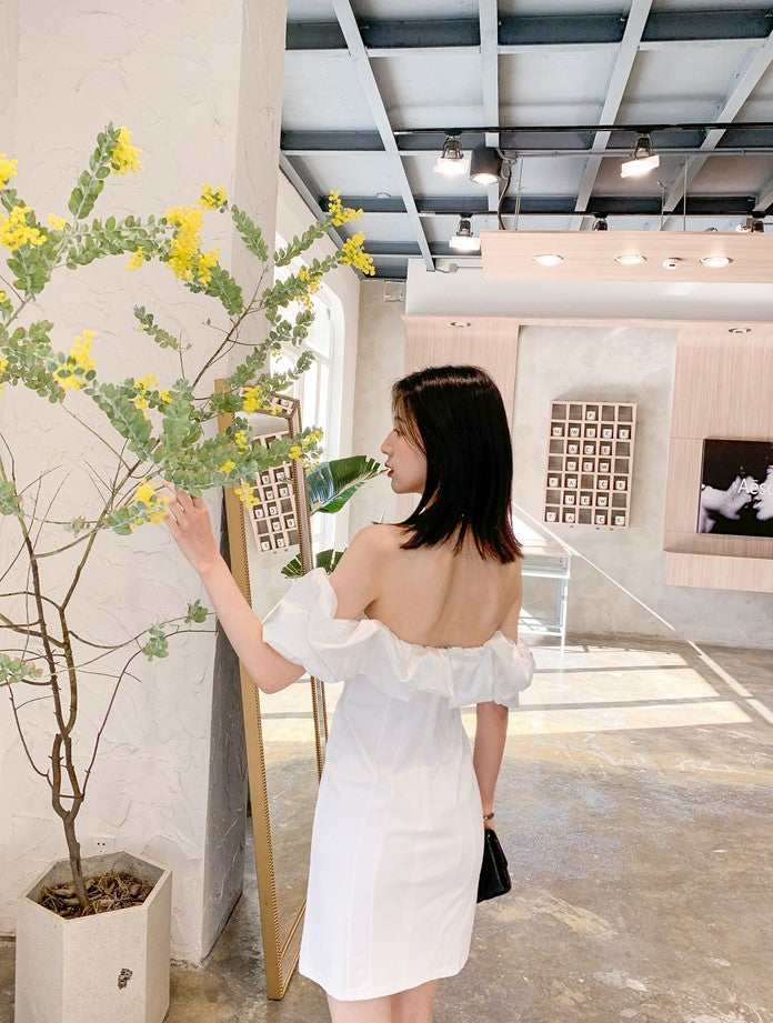 DOLLY Elegant Short Sleeve Ruffle Off Shoulder Chest Wrap Short Party Dress-LIZA