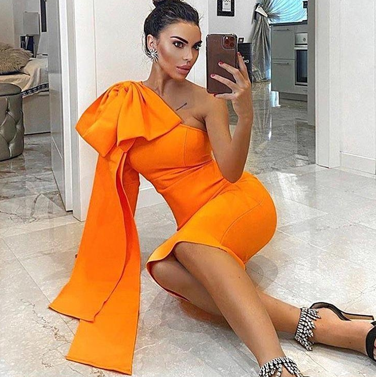 Indulge in luxury with our DOLLY Elegant Dinner Dress. The slant collar, long sleeves, and bow drape add a sophisticated touch to this body-hugging dress. Perfect for special occasions, it exudes class and elegance. Experience the world of high-end fashion with CALA.(v)
