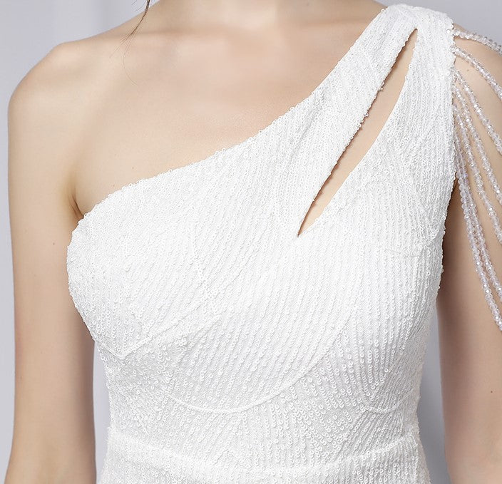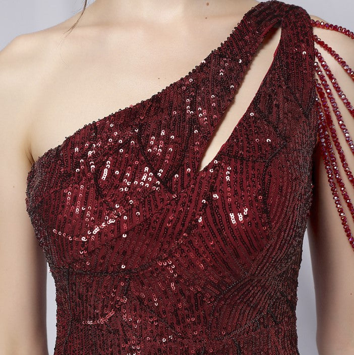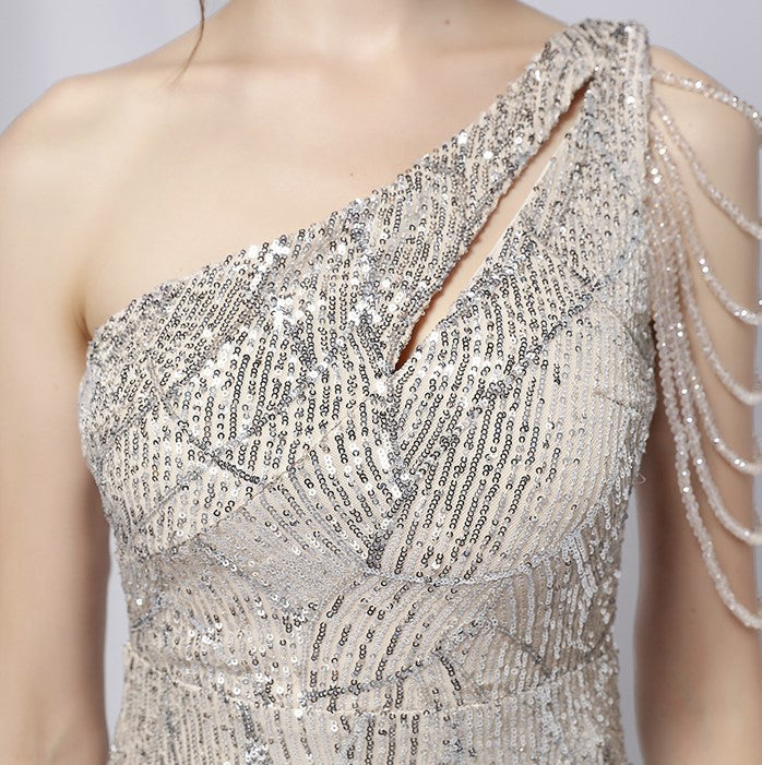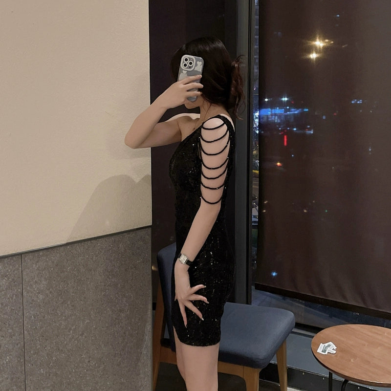 DOLLY Elegant Slant Collar Sleeveless Splice Sequin Slim Fit Dinner Guest Dress-NANA