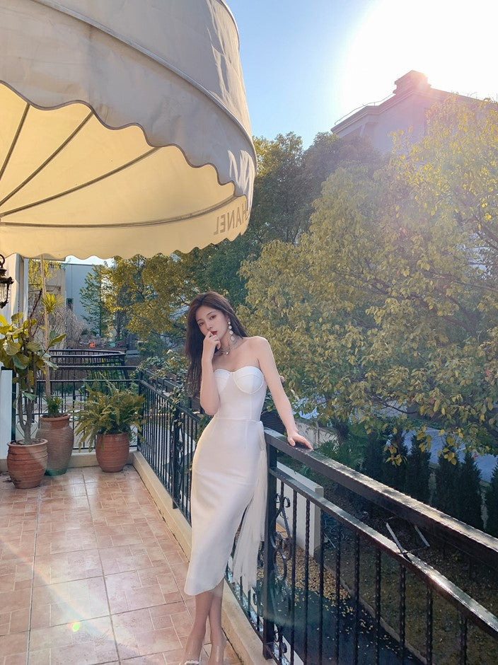 DOLLY Elegant Sleeveless Off Shoulder Backless Knitted Dinner Dress-URIEL