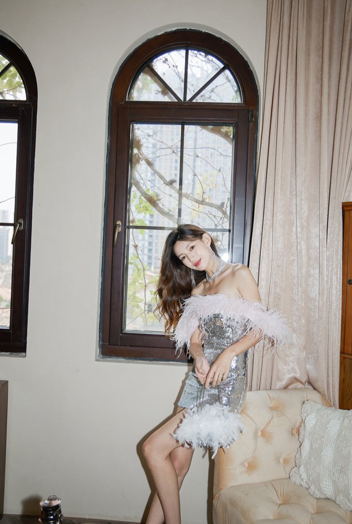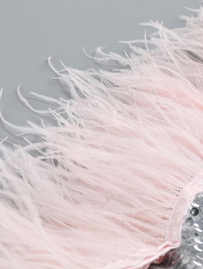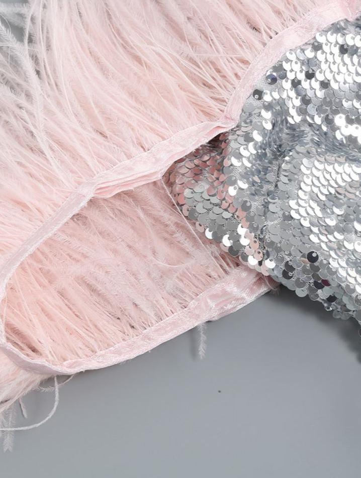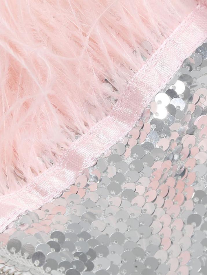 DOLLY Elegant Sliver Off Shoulder Pink Feather Tube Top Midi Dinner Dress-LALYA