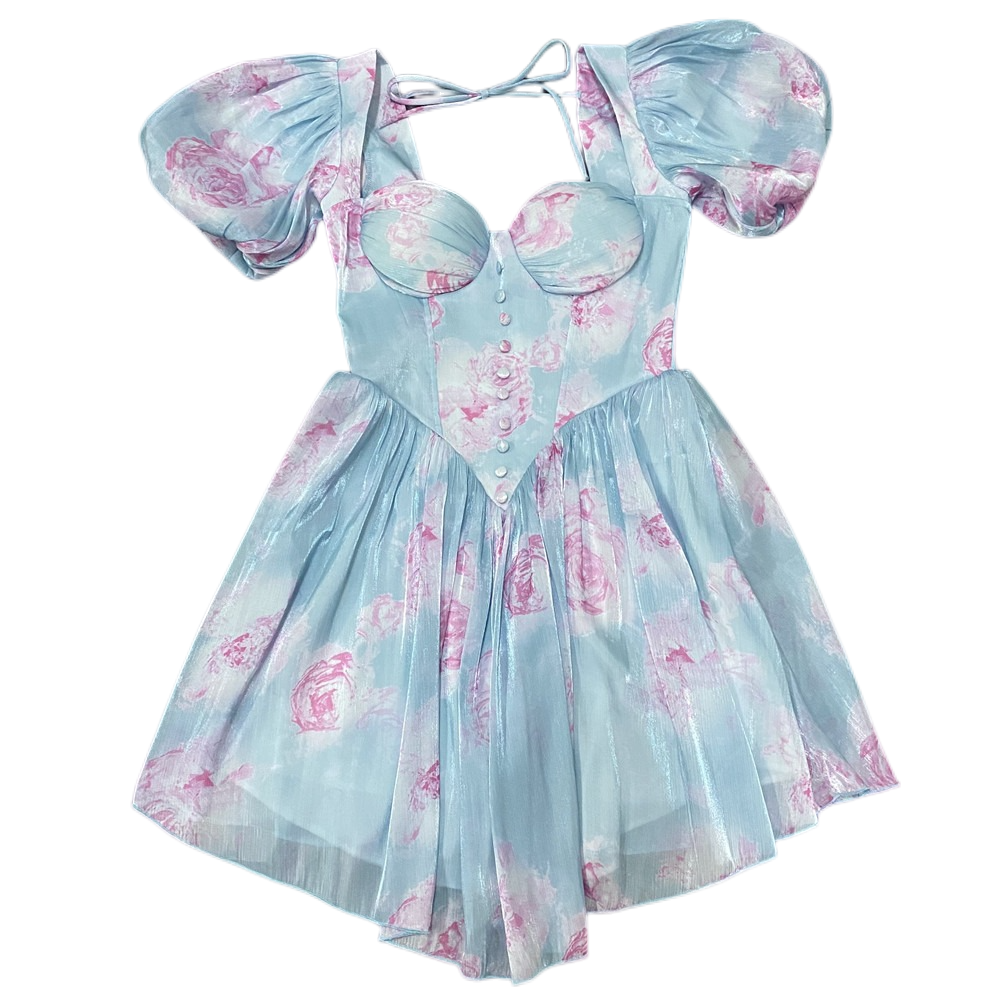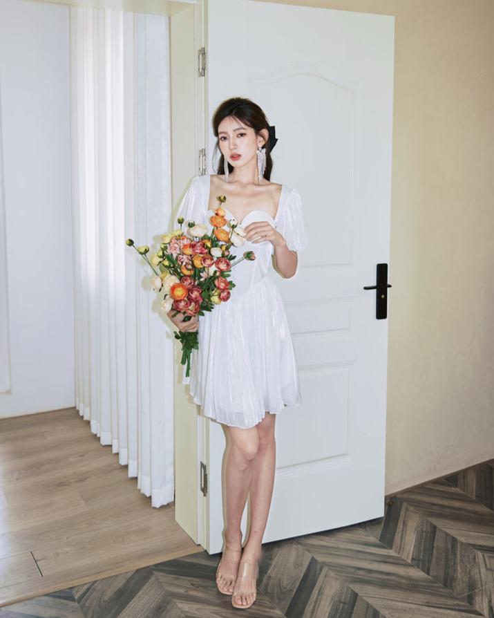 DOLLY Elegant Square Collar Short Sleeve Corset Top Backless Midi A-Line Dress-GISELA
